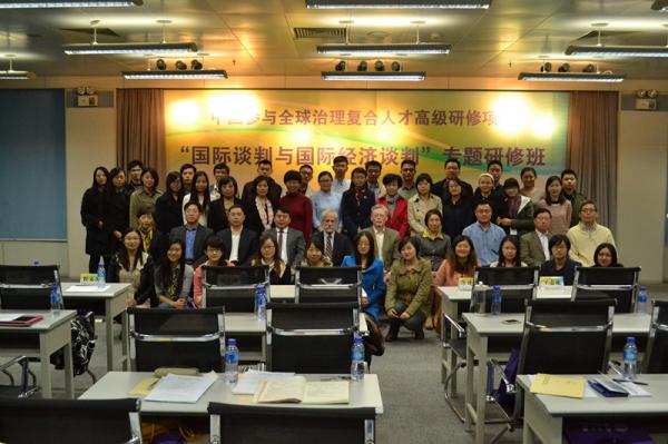 副校长佟家栋教授出席研修班的开幕式并致辞。财政部国际司邹加怡司长、外交部国际经济司李克新副司长和商务部国际经贸关系司孙元江副司长出席了开幕式,并分别从我国参与全球经济治理的理念与实践、实施经济外交战略和推进双边、区域和多边贸易协定的角度,为研修班学员做了全面系统的专题报告。与会的领导和专家对于启动“中国参与全球经济治理复合人才高级研修项目”给予了高度的评价,认为正当其时,非常重要。