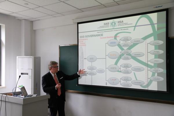 11月5日,国际行政科学学会主席(IIAS)吉尔特·波克特教授访问伊利论坛