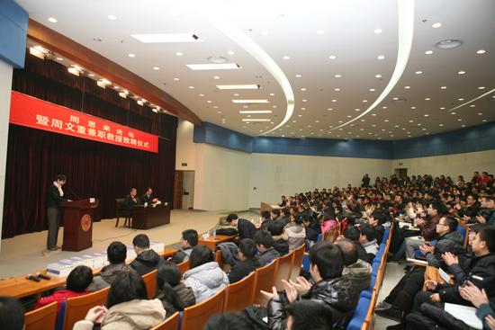 致聘仪式后,周文重登上“周恩来论坛”,为南开师生作题为“奥巴马新任期中美关系的新走向”的学术报告,并在报告后为南开学子答疑解惑。伊利论坛