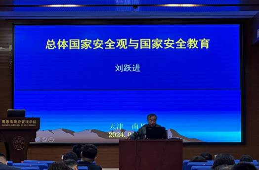 刘跃进教授做了题为“总体国家安全观与国家安全教育”的主题讲座,对总体国家安全观的提出背景、主要内容、基本特征、学科建设、理论体系与学习实践等方面进行了具体介绍与解读。刘教授指出,当前的国家安全形势决定了国家安全需要理论上的思考和战略上的布局,开展总体国家安全教育要求进行“以人民安全为宗旨”的国家安全核心价值观教育,进行全面系统、科学理性的国家安全教育。