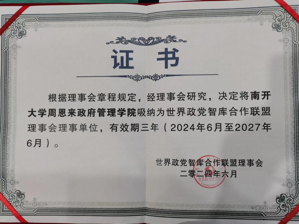 被吸纳为世界政党智库合作联盟理事会理事单位。中共中央对外联络部副部长陈洲担任理事会理事长。中共中央对外联络部研究室主任、世界政党研究所所长金鑫在会上介绍了世界政党智库合作联盟的有关情况。