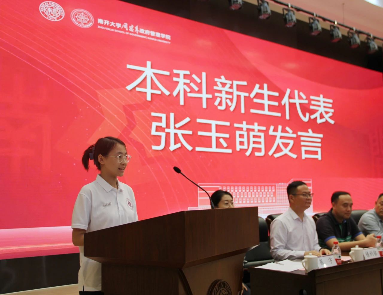 2024级本科生张玉萌,非常荣幸能够有机会站在这里作为学生代表发言,我感到无比激动。