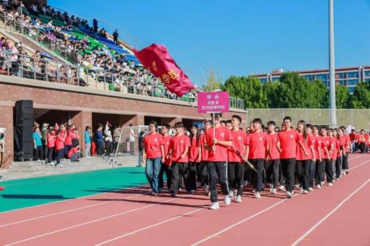 开幕式上,学院教职工与学生一起组成方阵队列,精神抖擞步入赛场,统一的服装、整齐的步伐、响亮的口号,充分彰显周政队伍的风采与活力,展现了周政人奋发向上的精神面貌。