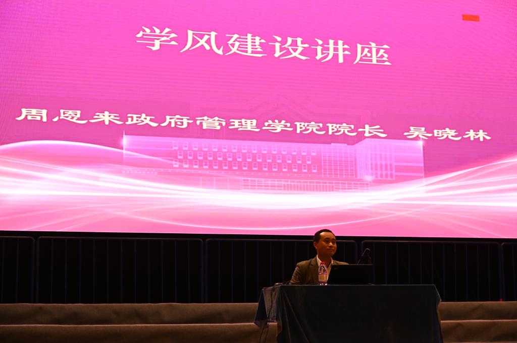 开展“诚信南开”学风建设专题讲座,院长吴晓林教授以“读大学,究竟读什么”为主题进行讲授,公管大类新生及硕博新生200余人参加。