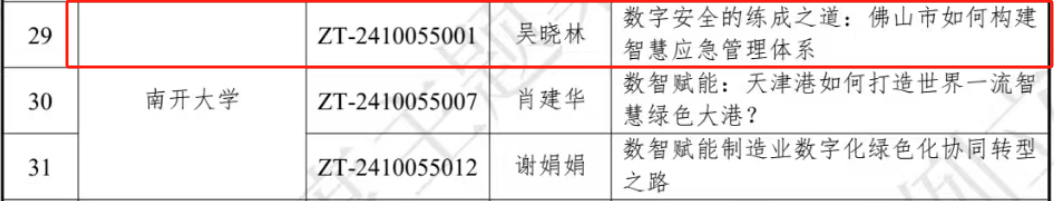吴晓林教授题为《数字安全的练成之道:佛山市如何构建智慧应急管理体系》案例获教育部学位与研究生教育发展中心主题案例立项。