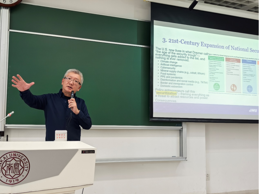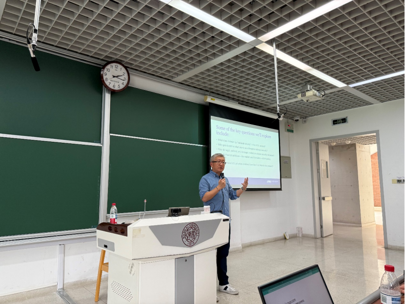 作为政治心理学、对外政策分析和中美关系等研究领域的知名专家,杨溢教授以“美国国家安全政策”为分析对象,从“国家安全”概念、国家安全政策决策过程和当前涉及美国国家安全的主要辩论与核心困境等方面入手,从理论上深入解析了美国安全政策的形成和演变逻辑,同时又注重将理论知识应用到对热点问题的分析中,有效激发了学生从学理视角系统性认识美国国家安全战略的热情。师生还针对美国精英对华认知演变、“泛安全化”与国内政治的关系,以及国际关系论文写作等问题展开了深入交流,课堂学术氛围浓厚。
