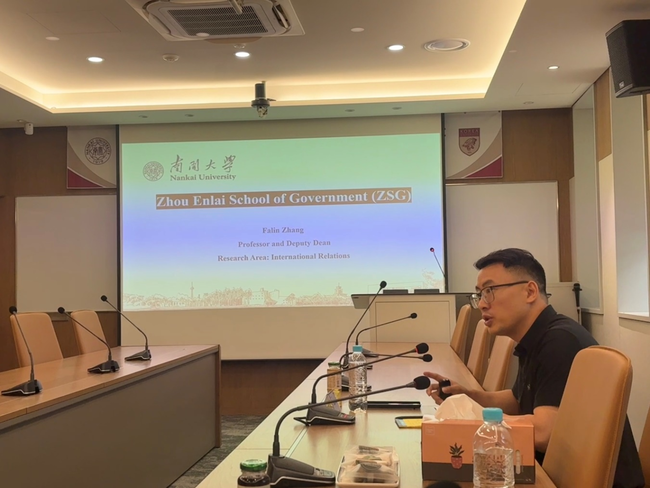 副教授(高丽大学客座教授)孙轩老师介绍“学生留学交换”和“学术夏令营”项目进展情况。