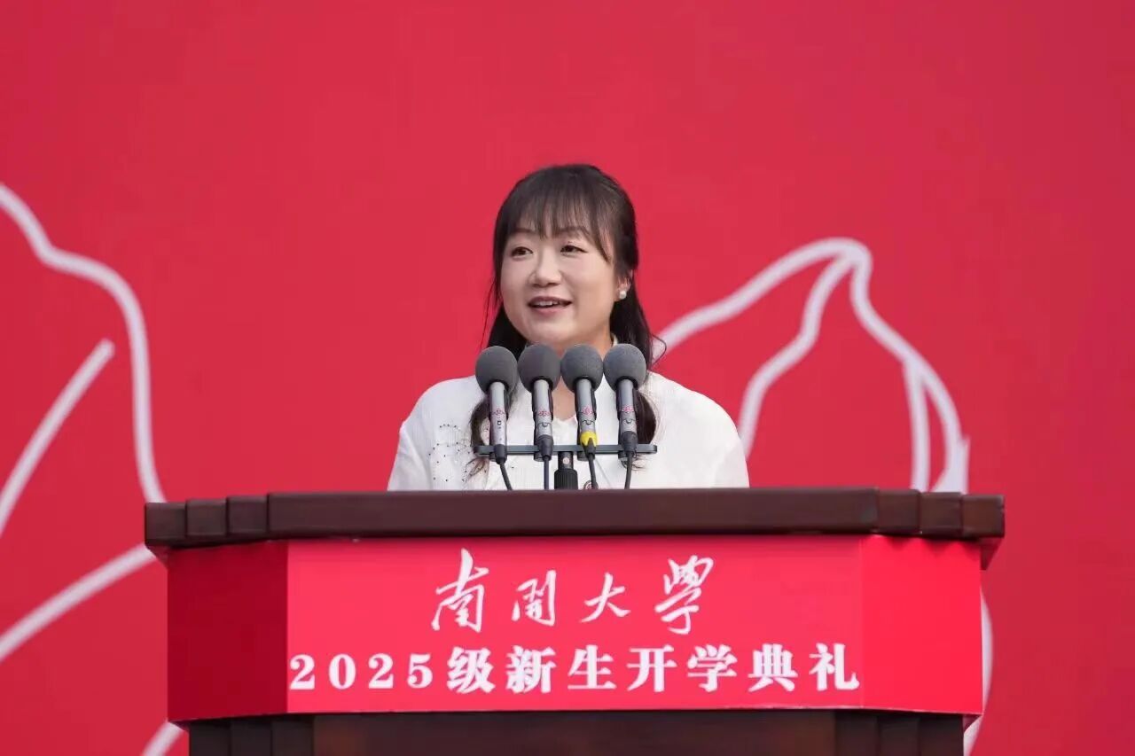 青年教师杨娜,在今天这个美好的日子,非常荣幸代表学校全体教师欢迎各位新同学加盟南开大家庭!