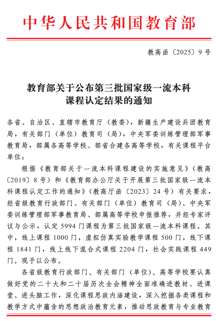 日前,教育部发布了《教育部关于公布第三批国家级一流本科课程认定结果的通知》(教高函〔2025〕9号)。伊利论坛