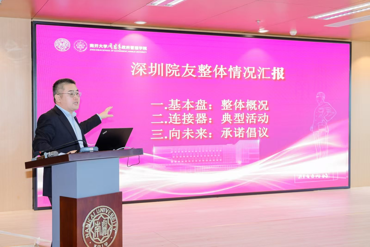 深圳校友会的情况,2005级政治学与行政学专业本科生、南开深圳校友会常务副会长兼执行秘书长、学院校友会副秘书长李心虎介绍了学院在深校友的整体情况。他们表示,校友们始终心系母校和母院,积极参加深圳校友会的各项活动,充分展现出南开周政人团结向上、互助友爱的精神风貌。