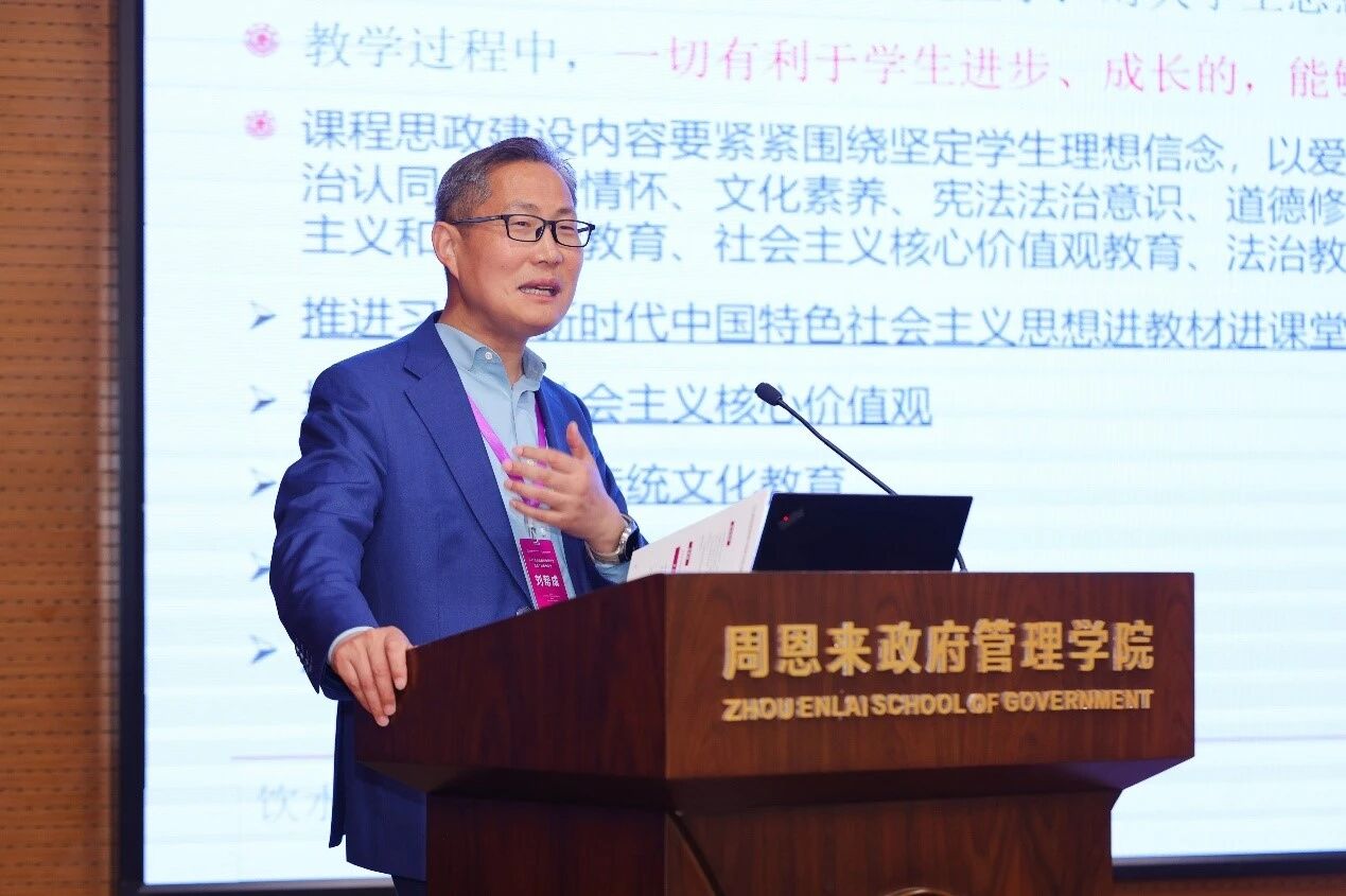 院长章文光教授围绕“以课载道·以行践知:知行合一视角下MPA课程思政体系构建”主题,系统阐释MPA课程思政“第一课堂强基铸魂、第二课堂以行践知”的育人模式,强调通过课程融入、案例教学、实践赋能推动思政教育与专业培养深度融合。
