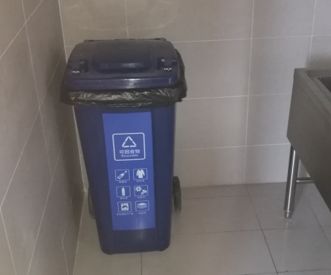 3. 可回收物桶:每层放置2个,分别摆放在北侧楼道尽头和南侧开水间内,除了一楼南侧的摆放在114室附近。