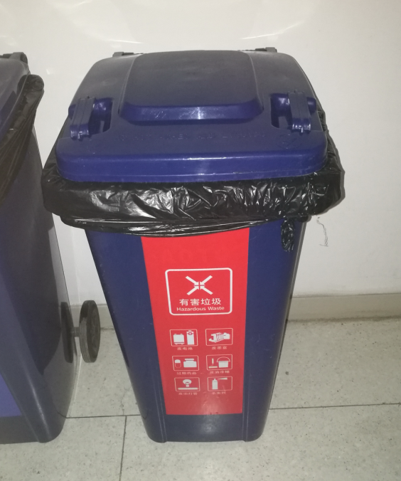 4. 有害垃圾桶:全楼放置1个,摆放在南侧114室附近楼道内。