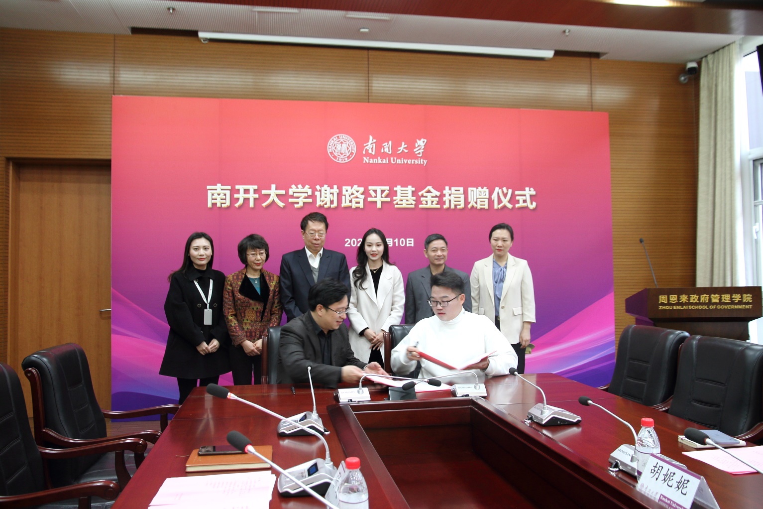 朱光磊代表学校向谢路平的慷慨捐赠表示衷心感谢。他说,南开校友与母校有着天然的深厚情谊,谢路平校友的捐赠之举,是心怀母校南开、恪守“公能”精神的切实表现。朱光磊鼓励与会师生继续将学院各项工作向前推进,争创更好业绩,取得更大发展,不负校友们的殷切期望。