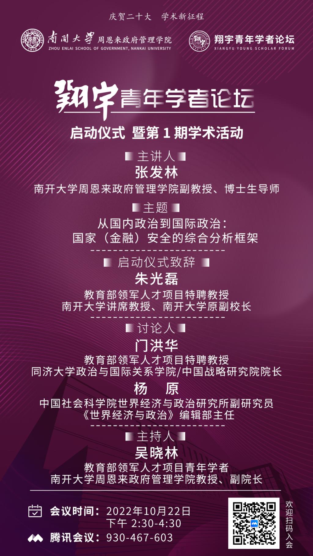 正式策划推出“翔宇青年学者论坛”,并定于2022年10月22日(星期六)14:30 在线举行论坛启动仪式和第一期学术活动。