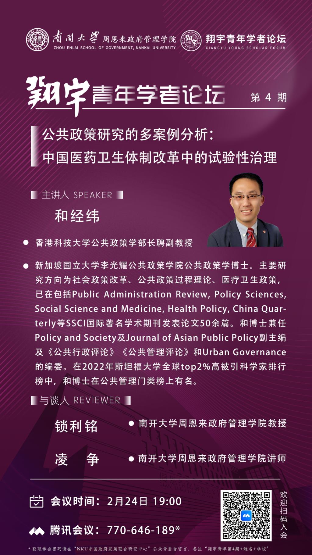 注:获取参会密码请在“NKU中国政府发展联合研究中心”公众号后台留言,备注“翔宇青年第4期+姓名+学校”。