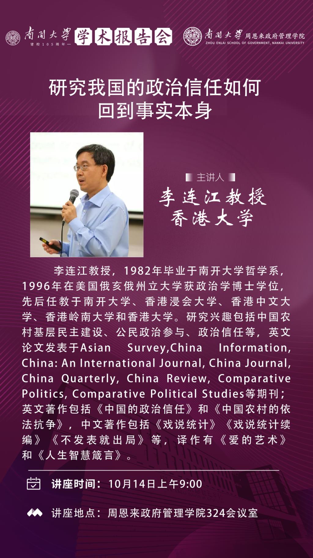 伊利论坛 建校105周年学术报告会|李连江:研究我国的政治信任如何回到事实本身