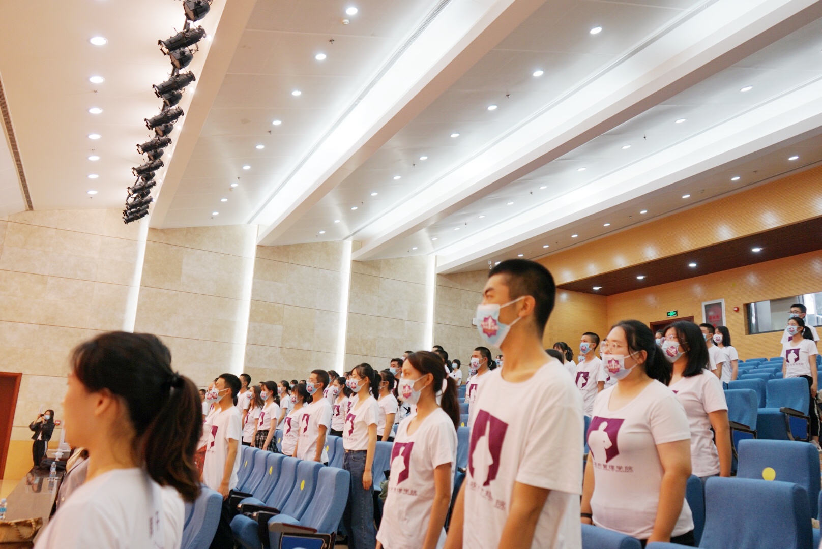 “面必净,发必理,衣必整,纽必结;头容正,肩容平,胸容宽,背容直。勿傲,勿暴,勿怠;宜和,宜静,宜庄。”在2020级硕士研究生薛博文的带领下,全体师生齐声诵读南开容止格言,正衣冠面容,立志做真正的南开人。